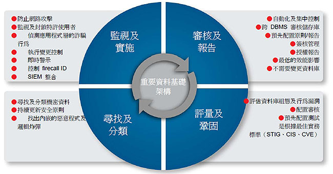 InfoSphere Guardium簡單又強大的解決方案,將異質環境中的所有法規遵循審核程序自動化,以確保資料中心(SAP、PeopleSoft、Cognos、Siebel 等)內可靠資訊的隱私和完整,透過部署集中管理且標準化的控管功能,以便即時維護資料庫安全並加以監視、進行詳細的資料庫審核、將法規遵循的報告自動化、管制資料層級的存取、管理資料庫漏洞,並自動探索機密資料利用資料庫活動監視防止網路攻擊,持續追蹤所有資料庫的動作,以主動識別未獲授權或可疑的活動,完全不影響效能,亦無須變更資料庫,為資訊密集的專案提供企業級基礎,以簡化難題並為企業快速提供可靠資訊,進而達到最佳效能、可調整性、可靠性及加速功能。